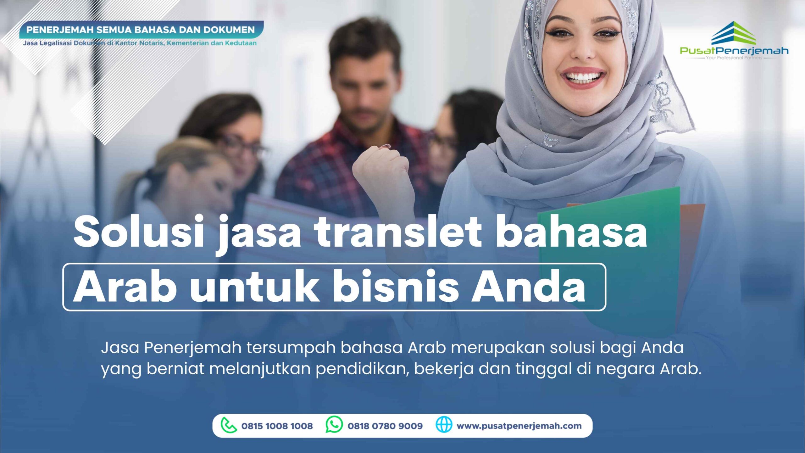 Layanan jasa penerjemah resmi tersumpah Bahasa Arab yang dikerjakan oleh penerjemah berpengalaman dan diakui, untuk kebutuhan penerjemahan dokumen Indonesia–Arab dan Arab–Indonesia secara profesional.