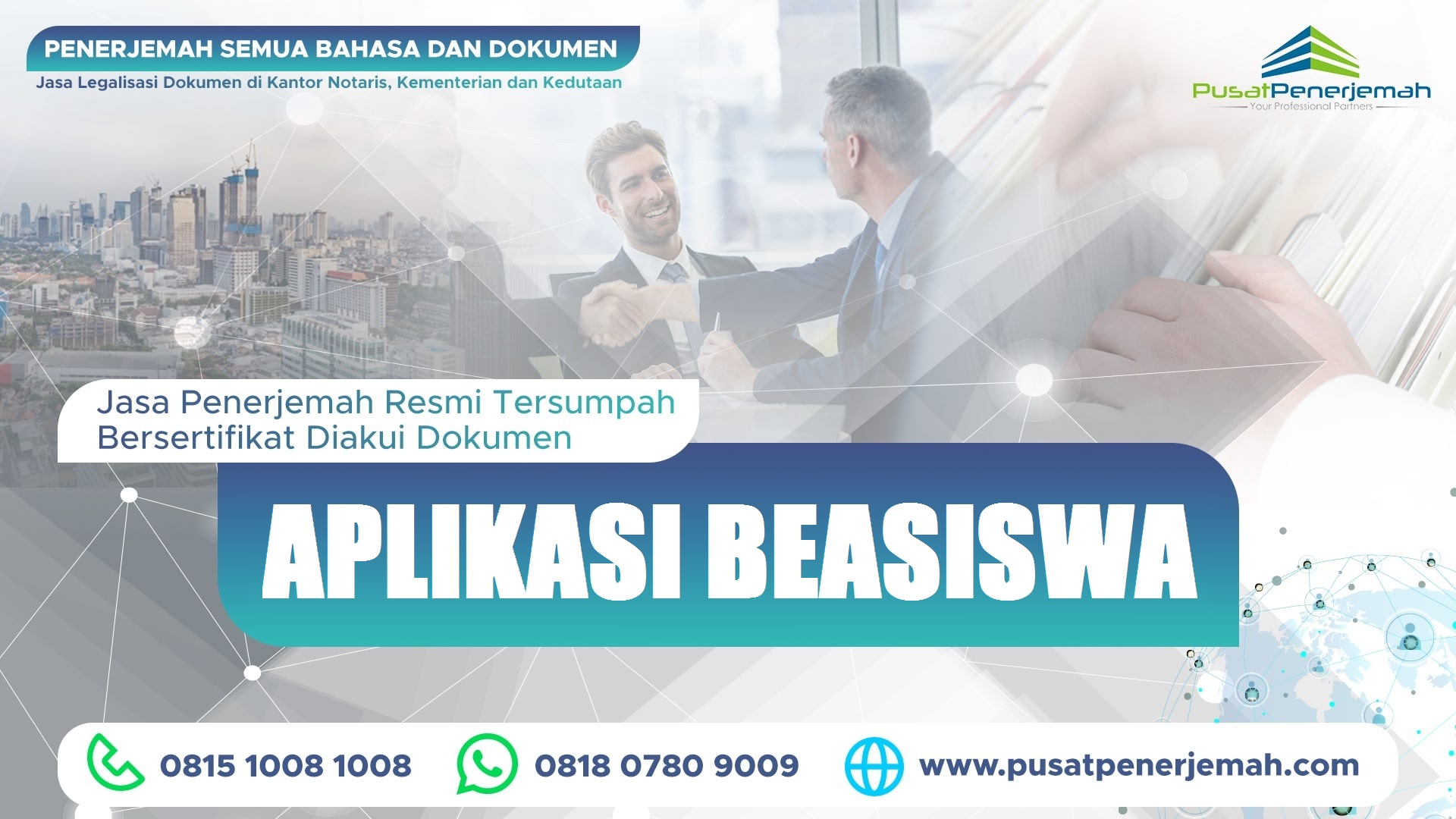 Penerjemahan DOKUMEN HUKUM, LEGAL, KOMERSIL, Perbankan, Pertambangan, Konstruksi, Propreti, Keuangan, Pertanian, Kelautan, Kehutanan, Teknik, Perindustrian, Investasi, Perdagangan, Bisnis, Informatika, Software, Digital, Otomotif, Olahraga, Komputer, Kedokteran, Komunikasi, Politik, Sosial, Perkebunan, Pendidikan, Ekonomi, Pertahanan, Keamanan, Kebudayaan, Penerjemahan WEBSITE (website localization) dan penerjemahan dokumen penting lainnya.