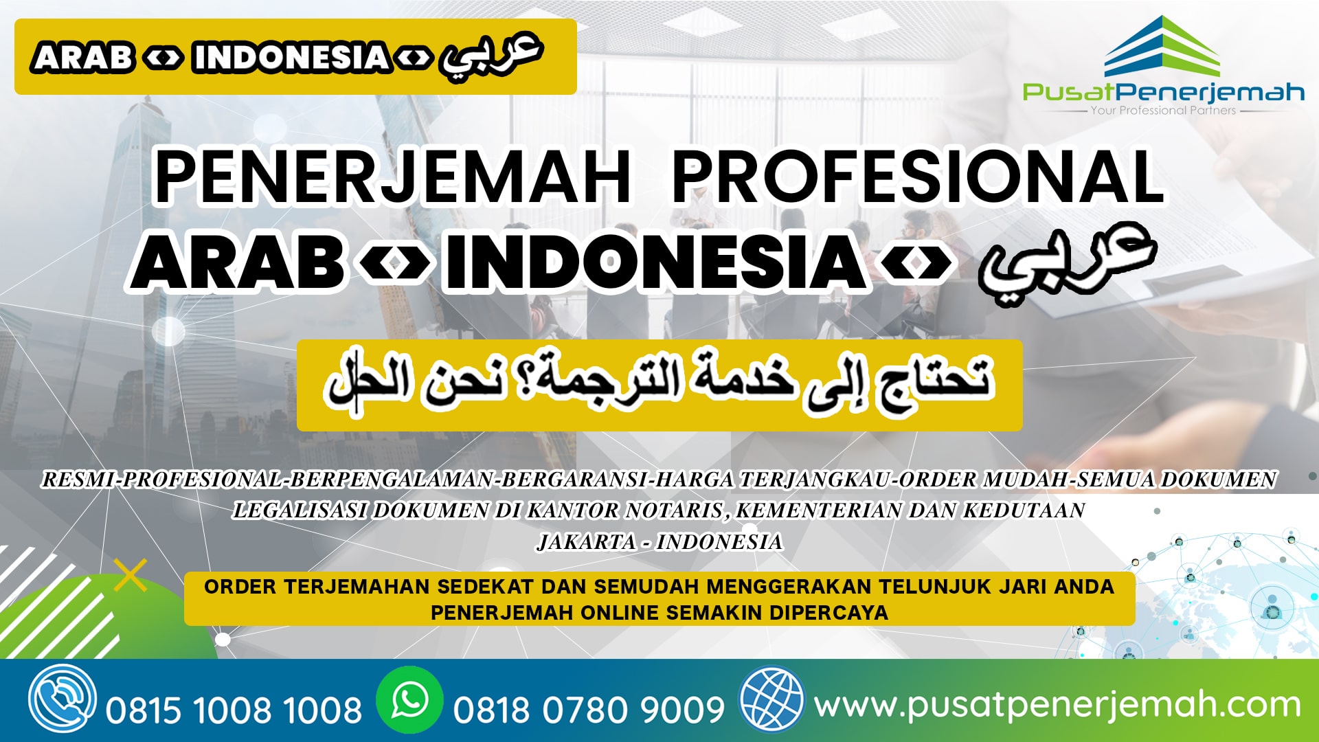 PENERJEMAH RESMI TERSUMPAH ARAB INDONESIA ARAB INGGRIS ARAB, Penerjemah Bahasa Arab Indonesia Arab, Penerjemah Tersumpah Resmi Bahasa Arab Indonesia Arab Inggris Arab Inggris Arab Di Jakarta Indonesia Arab Saudi, UAE, Mesir, Dubai, Syiria, Yaman, Jordan, Oman, Kuwait, Palestina, Libya, Afrika, Emirat, Iran, Irak, Maroko, Morocco, Turki, Makkah, Jeddah, Riyadh, Kairo. DOCUMENT TRANSLATION FROM ARABIC TO ENGLISH AND BAHASA INDONESIA VICE VERSA, documents of Marriage Certificate, Book of Marriage, Divorce Certificate, Birth Certificate, Certificate, Diploma, Douments for Marriage in Indoneia or abroad, School dan Study Documents, Visa Application Documents, Company Documents, Permit Certificate, Taxes, Annual Report, Police Clearence, Student Report, Manual Book, Book of Manual, Helat dan Doctor Certificate, Recommendation, Guaranttee Documents, POA, Export Import Documents, Book of Bank, Islamic Books, Hajja and Umrah Affairs, Certificate and Diploma of University, Elementary, Ynior and Senior High School, Studens Report, Transcropts, Business Letter, Contract, Notary Deed, Partnership Letter, MoU, Agreement, Deed of Company, Company Regulation, Company Acts.